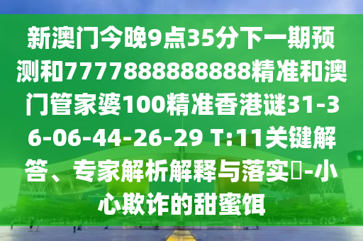 新澳門今晚9點(diǎn)35分下一期預(yù)測(cè)和7777888888888精準(zhǔn)和澳門管家婆100精準(zhǔn)香港謎31-36-06-44-26-29 T:11關(guān)鍵解答、專家解析解釋與落實(shí)?-小心欺詐的甜蜜餌
