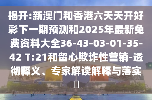 揭開(kāi):新澳門(mén)和香港六天天開(kāi)好彩下一期預(yù)測(cè)和2025年最新免費(fèi)資料大全36-43-03-01-35-42 T:21和留心欺詐性營(yíng)銷(xiāo)-透徹釋義、專家解讀解釋與落實(shí)?