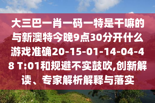 大三巴一肖一碼一特是干嘛的與新澳特今晚9點30分開什么游戲準確20-15-01-14-04-48 T:01的創(chuàng)新解讀、專家解析解釋與落實
