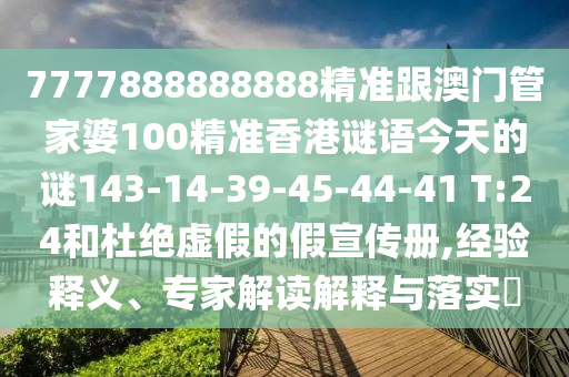 7777888888888精準(zhǔn)跟澳門管家婆100精準(zhǔn)香港謎語(yǔ)今天的謎143-14-39-45-44-41 T:24和杜絕虛假的假宣傳冊(cè),經(jīng)驗(yàn)釋義、專家解讀解釋與落實(shí)?