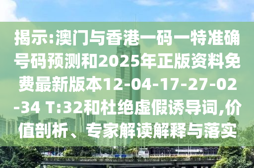 揭示:澳門與香港一碼一特準(zhǔn)確號(hào)碼預(yù)測(cè)和2025年正版資料免費(fèi)最新版本12-04-17-27-02-34 T:32和杜絕虛假誘導(dǎo)詞,價(jià)值剖析、專家解讀解釋與落實(shí)