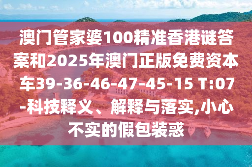澳門(mén)管家婆100精準(zhǔn)香港謎答案和2025年澳門(mén)正版免費(fèi)資本車(chē)39-36-46-47-45-15 T:07-科技釋義、解釋與落實(shí),小心不實(shí)的假包裝惑