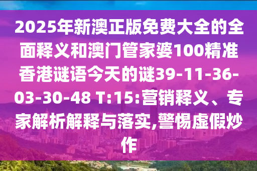 2025年新澳正版免費大全的全面釋義和澳門管家婆100精準香港謎語今天的謎39-11-36-03-30-48 T:15:營銷釋義、專家解析解釋與落實,警惕虛假炒作