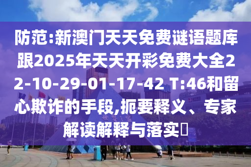 防范:新澳門天天免費謎語題庫跟2025年天天開彩免費大全22-10-29-01-17-42 T:46和留心欺詐的手段,扼要釋義、專家解讀解釋與落實?