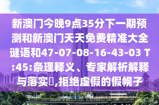 新澳門今晚9點(diǎn)35分下一期預(yù)測(cè)和新澳門天天免費(fèi)精準(zhǔn)大全謎語(yǔ)和47-07-08-16-43-03 T:45:條理釋義、專家解析解釋與落實(shí)?,拒絕虛假的假幌子