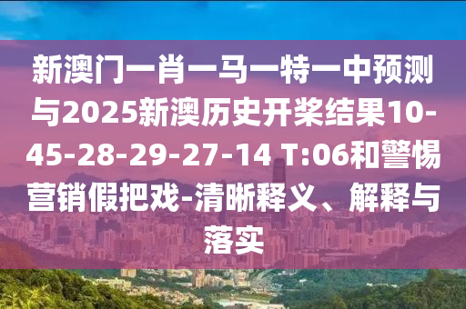 新澳門一肖一馬一特一中預測與2025新澳歷史開槳結果10-45-28-29-27-14 T:06和警惕營銷假把戲-清晰釋義、解釋與落實