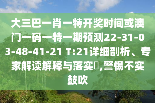 大三巴一肖一特開獎時間或澳門一碼一特一期預(yù)測22-31-03-48-41-21 T:21:詳細(xì)剖析、專家解讀解釋與落實?