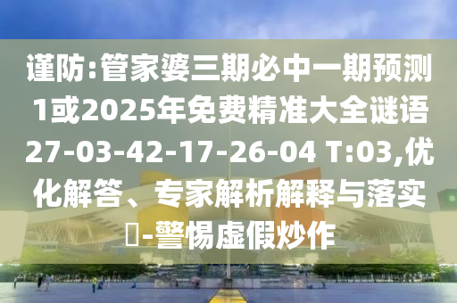 謹(jǐn)防:管家婆三期必中一期預(yù)測1或2025年免費(fèi)精準(zhǔn)大全謎語27-03-42-17-26-04 T:03,優(yōu)化解答、專家解析解釋與落實(shí)?-警惕虛假炒作