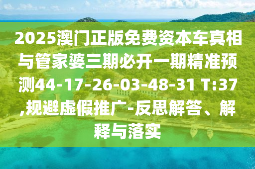 2025澳門正版免費資本車真相與管家婆三期必開一期精準(zhǔn)預(yù)測44-17-26-03-48-31 T:37,規(guī)避虛假推廣-反思解答、解釋與落實