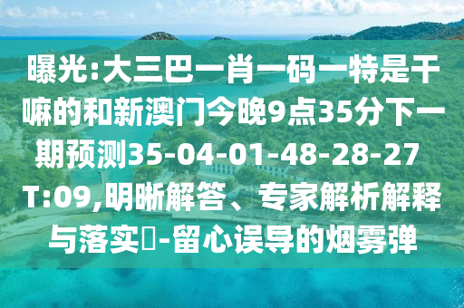 曝光:大三巴一肖一碼一特是干嘛的和新澳門今晚9點35分下一期預測35-04-01-48-28-27 T:09,明晰解答、專家解析解釋與落實?-留心誤導的煙霧彈