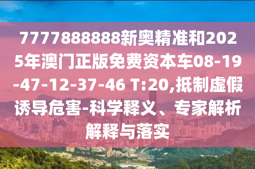 7777888888新奧精準和2025年澳門正版免費資本車08-19-47-12-37-46 T:20,抵制虛假誘導(dǎo)危害-科學(xué)釋義、專家解析解釋與落實