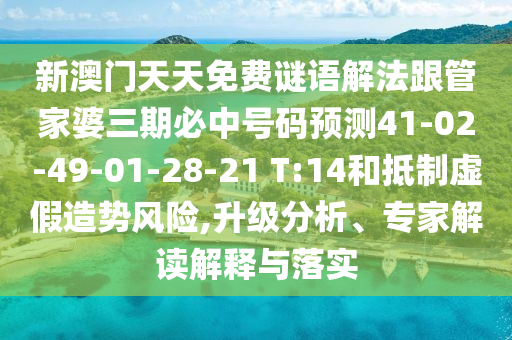 新澳門天天免費(fèi)謎語(yǔ)解法跟管家婆三期必中號(hào)碼預(yù)測(cè)41-02-49-01-28-21 T:14和抵制虛假造勢(shì)風(fēng)險(xiǎn),升級(jí)分析、專家解讀解釋與落實(shí)