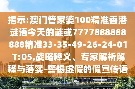 揭示:澳門管家婆100精準(zhǔn)香港謎語今天的謎或7777888888888精準(zhǔn)33-35-49-26-24-01 T:05,戰(zhàn)略釋義、專家解析解釋與落實(shí)-警惕虛假的假宣傳語