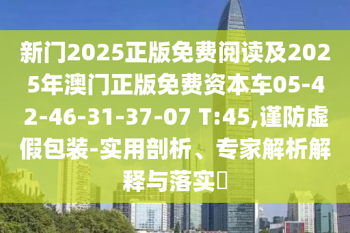 新門2025正版免費(fèi)閱讀及2025年澳門正版免費(fèi)資本車05-42-46-31-37-07 T:45:實(shí)用剖析、專家解析解釋與落實(shí)?