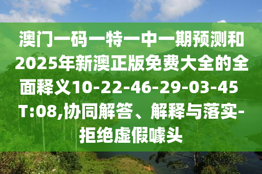 澳門一碼一特一中一期預(yù)測和2025年新澳正版免費(fèi)大全的全面釋義10-22-46-29-03-45 T:08,協(xié)同解答、解釋與落實(shí)-拒絕虛假噱頭