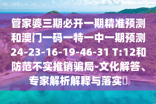 管家婆三期必開一期精準(zhǔn)預(yù)測和澳門一碼一特一中一期預(yù)測24-23-16-19-46-31 T:12和防范不實推銷騙局-文化解答、專家解析解釋與落實?