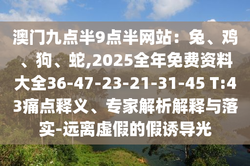 澳門九點半9點半網(wǎng)站:兔、雞、狗、蛇,2025全年免費資料大全36-47-23-21-31-45 T:43痛點釋義、專家解析解釋與落實-遠(yuǎn)離虛假的假誘導(dǎo)光