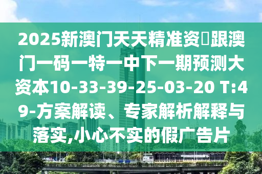 2025新澳門天天精準資枓跟澳門一碼一特一中下一期預測大資本10-33-39-25-03-20 T:49-方案解讀、專家解析解釋與落實,小心不實的假廣告片