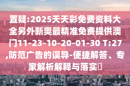 置疑:2025天天彩免費(fèi)資料大全另外新奧最精準(zhǔn)免費(fèi)提供澳門11-23-10-20-01-30 T:27,防范廣告的誤導(dǎo)-便捷解答、專家解析解釋與落實(shí)?