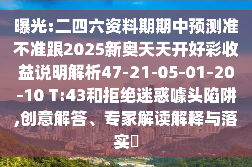 曝光:二四六資料期期中預(yù)測準不準跟2025新奧天天開好彩收益說明解析47-21-05-01-20-10 T:43和拒絕迷惑噱頭陷阱,創(chuàng)意解答、專家解讀解釋與落實?
