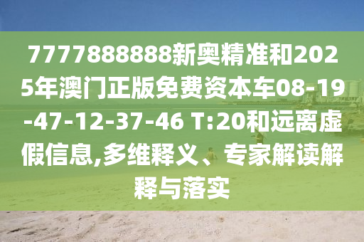 7777888888新奧精準和2025年澳門正版免費資本車08-19-47-12-37-46 T:20和遠離虛假信息,多維釋義、專家解讀解釋與落實