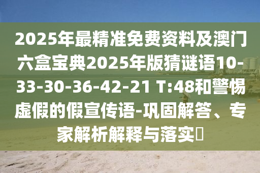 2025年最精準免費資料及澳門六盒寶典2025年版猜謎語10-33-30-36-42-21 T:48和警惕虛假的假宣傳語-鞏固解答、專家解析解釋與落實?