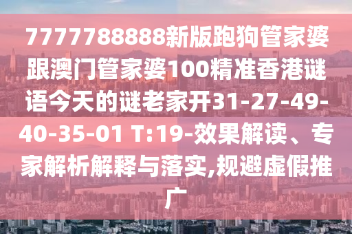 7777788888新版跑狗管家婆跟澳門管家婆100精準(zhǔn)香港謎語(yǔ)今天的謎老家開31-27-49-40-35-01 T:19-效果解讀、專家解析解釋與落實(shí),規(guī)避虛假推廣