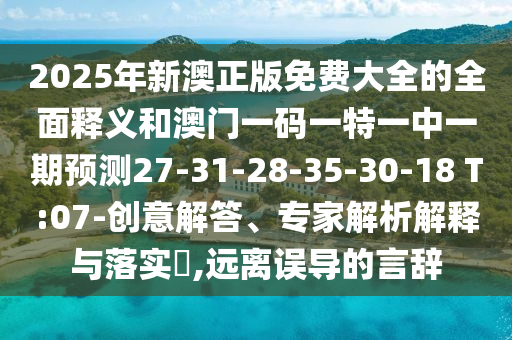2025年新澳正版免費大全的全面釋義和澳門一碼一特一中一期預測27-31-28-35-30-18 T:07-創(chuàng)意解答、專家解析解釋與落實?,遠離誤導的言辭