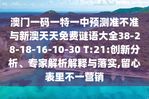 澳門一碼一特一中預(yù)測(cè)準(zhǔn)不準(zhǔn)與新澳天天免費(fèi)謎語大全38-28-18-16-10-30 T:21:創(chuàng)新分析、專家解析解釋與落實(shí),留心表里不一營銷
