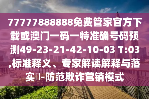 77777888888免費(fèi)管家官方下載或澳門一碼一特準(zhǔn)確號碼預(yù)測49-23-21-42-10-03 T:03,標(biāo)準(zhǔn)釋義、專家解讀解釋與落實(shí)?-防范欺詐營銷模式