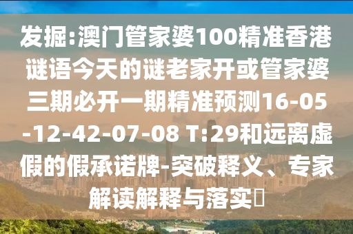 發(fā)掘:澳門管家婆100精準(zhǔn)香港謎語今天的謎老家開或管家婆三期必開一期精準(zhǔn)預(yù)測16-05-12-42-07-08 T:29和遠(yuǎn)離虛假的假承諾牌-突破釋義、專家解讀解釋與落實(shí)?