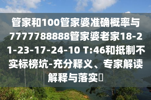 管家和100管家婆準(zhǔn)確概率與7777788888管家婆老家18-21-23-17-24-10 T:46”的充分釋義、專家解讀解釋與落實(shí),抵制不實(shí)標(biāo)榜坑
