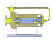 屏蔽電泵設(shè)計(jì)先進(jìn),由于具有無泄露優(yōu)點(diǎn),成功的解決了流體輸送中的跑、冒、滴、漏等問題,已成為工程中不可替代的產(chǎn)品。此泵廣泛應(yīng)用于石油、化工制冷、空調(diào)、航天、核工業(yè)等領(lǐng)域中,特別是對(duì)輸送易燃、易爆、易揮發(fā)、腐蝕、貴重等液體。屏蔽電泵為基本型、循環(huán)型、帶連接體系,溫度有低、中、高溫型,形式上有單級(jí)、多極型,單級(jí)揚(yáng)程在150米以內(nèi),多極揚(yáng)程達(dá)到400米。