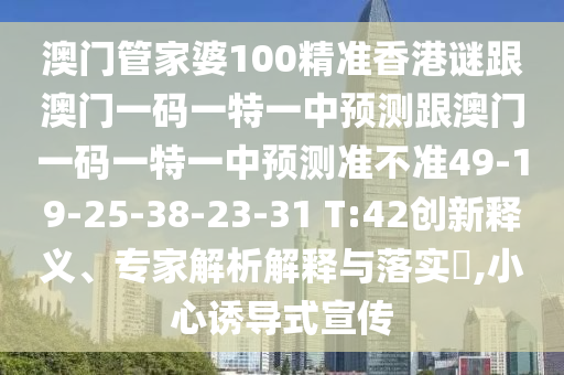 澳門管家婆100精準(zhǔn)香港謎跟澳門一碼一特一中預(yù)測跟澳門一碼一特一中預(yù)測準(zhǔn)不準(zhǔn)49-19-25-38-23-31 T:42創(chuàng)新釋義、專家解析解釋與落實?,小心誘導(dǎo)式宣傳