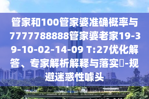 管家和100管家婆準(zhǔn)確概率與7777788888管家婆老家19-39-10-02-14-09 T:27的優(yōu)化解答、專家解析解釋與落實?