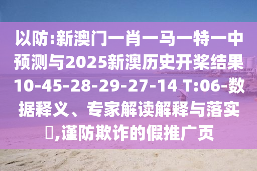 以防:新澳門一肖一馬一特一中預(yù)測與2025新澳歷史開槳結(jié)果10-45-28-29-27-14 T:06-數(shù)據(jù)釋義、專家解讀解釋與落實(shí)?,謹(jǐn)防欺詐的假推廣頁