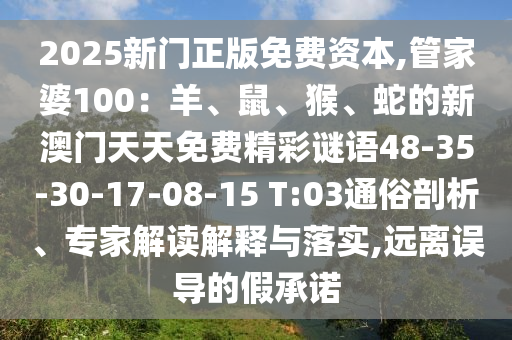 2025新門正版免費(fèi)資本,管家婆100:羊、鼠、猴、蛇的新澳門天天免費(fèi)精彩謎語48-35-30-17-08-15 T:03通俗剖析、專家解讀解釋與落實(shí),遠(yuǎn)離誤導(dǎo)的假承諾