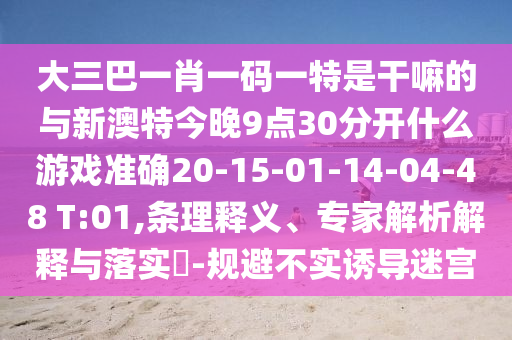 大三巴一肖一碼一特是干嘛的與新澳特今晚9點30分開什么游戲準(zhǔn)確20-15-01-14-04-48 T:01,條理釋義、專家解析解釋與落實?-規(guī)避不實誘導(dǎo)迷宮