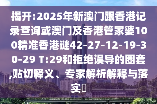 揭開:2025年新澳門跟香港記錄查詢或澳門及香港管家婆100精準(zhǔn)香港謎42-27-12-19-30-29 T:29和拒絕誤導(dǎo)的圈套,貼切釋義、專家解析解釋與落實(shí)?