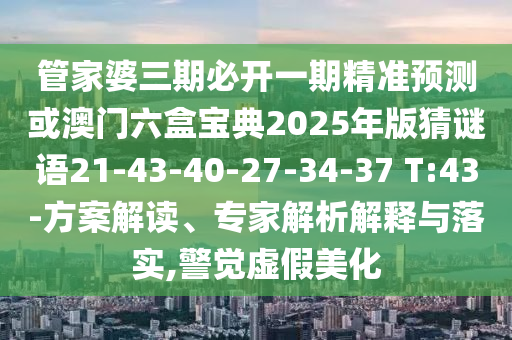 管家婆三期必開一期精準(zhǔn)預(yù)測(cè)或澳門六盒寶典2025年版猜謎語(yǔ)21-43-40-27-34-37 T:43-方案解讀、專家解析解釋與落實(shí),警覺(jué)虛假美化