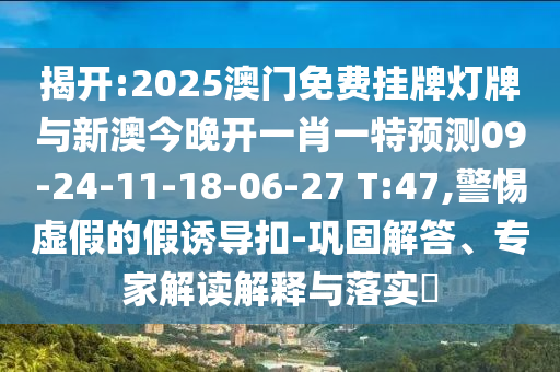 揭開:2025澳門免費掛牌燈牌與新澳今晚開一肖一特預測09-24-11-18-06-27 T:47,警惕虛假的假誘導扣-鞏固解答、專家解讀解釋與落實?