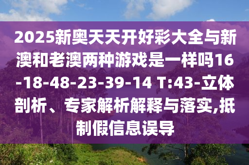 2025新奧天天開好彩大全與新澳和老澳兩種游戲是一樣嗎16-18-48-23-39-14 T:43-立體剖析、專家解析解釋與落實(shí),抵制假信息誤導(dǎo)