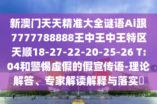 新澳門天天精準(zhǔn)大全謎語Ai跟7777788888王中王中王特區(qū)天順18-27-22-20-25-26 T:04和警惕虛假的假宣傳語-理論解答、專家解讀解釋與落實(shí)?