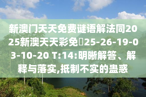 新澳門天天免費(fèi)謎語(yǔ)解法同2025新澳天天彩免費(fèi)25-26-19-03-10-20 T:14:明晰解答、解釋與落實(shí),抵制不實(shí)的蠱惑