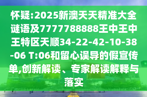 懷疑:2025新澳天天精準(zhǔn)大全謎語及7777788888王中王中王特區(qū)天順34-22-42-10-38-06 T:06和留心誤導(dǎo)的假宣傳單,創(chuàng)新解讀、專家解讀解釋與落實