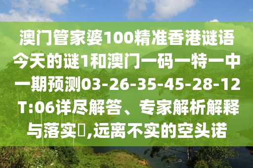 澳門管家婆100精準香港謎語今天的謎1和澳門一碼一特一中一期預(yù)測03-26-35-45-28-12 T:06詳盡解答、專家解析解釋與落實?,遠離不實的空頭諾