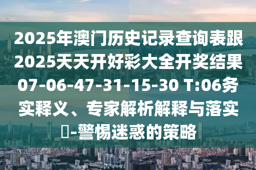 2025年澳門歷史記錄查詢表跟2025天天開好彩大全開獎結(jié)果07-06-47-31-15-30 T:06的務(wù)實釋義、專家解析解釋與落實?