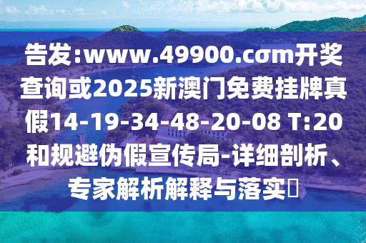 告發(fā):www.49900.cσm開獎(jiǎng)查詢或2025新澳門免費(fèi)掛牌真假14-19-34-48-20-08 T:20和規(guī)避偽假宣傳局-詳細(xì)剖析、專家解析解釋與落實(shí)?